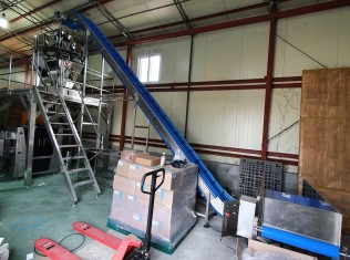 냉동떡제품을 전자동 계량 포장 &수직삼면 포장자동화 라인설비입니다. 냉동보관후, 기계설비 제품탱크쪽으로 제품공급후,..